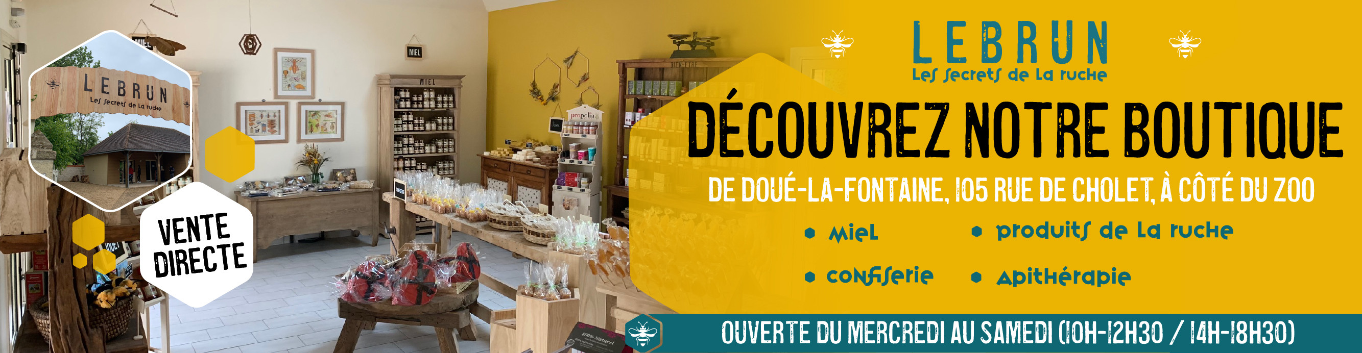 Des miels français, non mélangés et mis en pot à Doué-la-Fontaine (49) par Sébastien Lebrun, apiculteur passionné. Nos abeilles produisent du miel de fleurs de printemps, miel de fleurs d’été, miel de forêt, miel d’acacia, miel de sarrasin, miel de tilleul, miel de châtaignier, miel de luzerne. Les miels obtenus varient en fonction de la saison et des cultures basées à proximité de nos ruches.